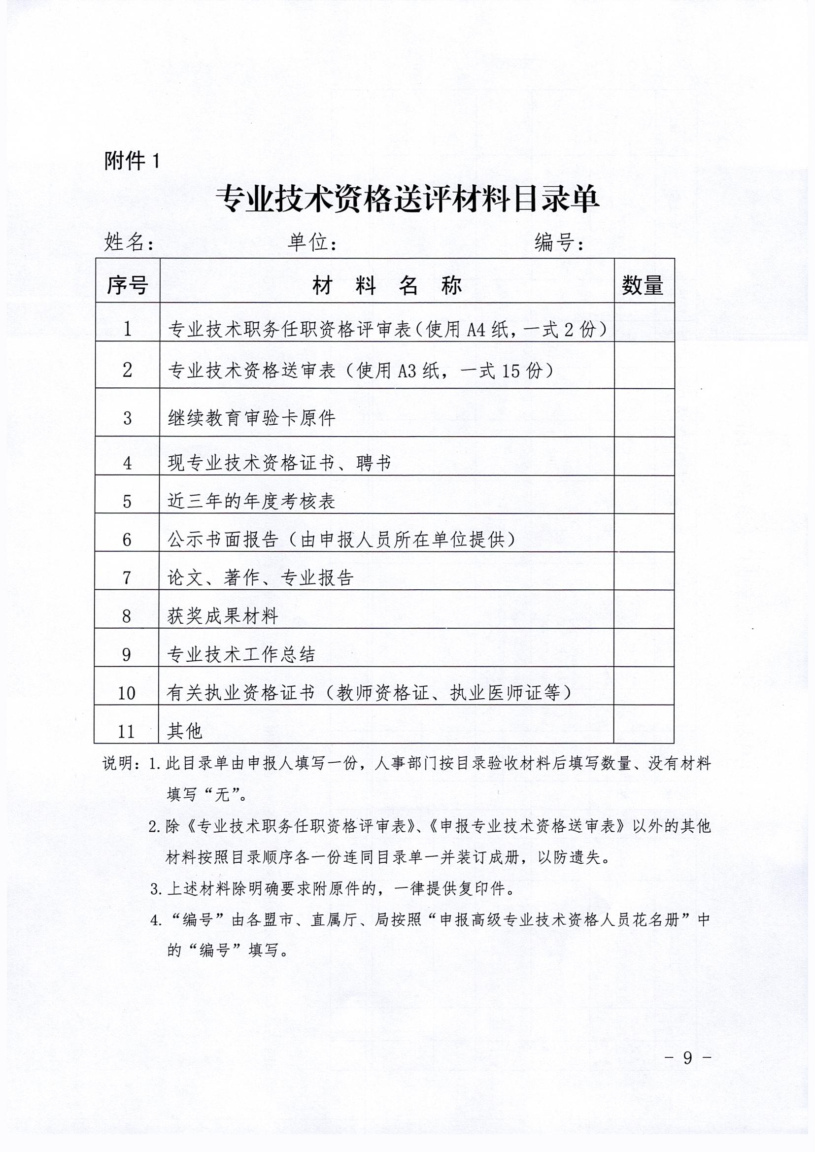 附件1:專業(yè)技術(shù)資格送評材料目錄單.docx