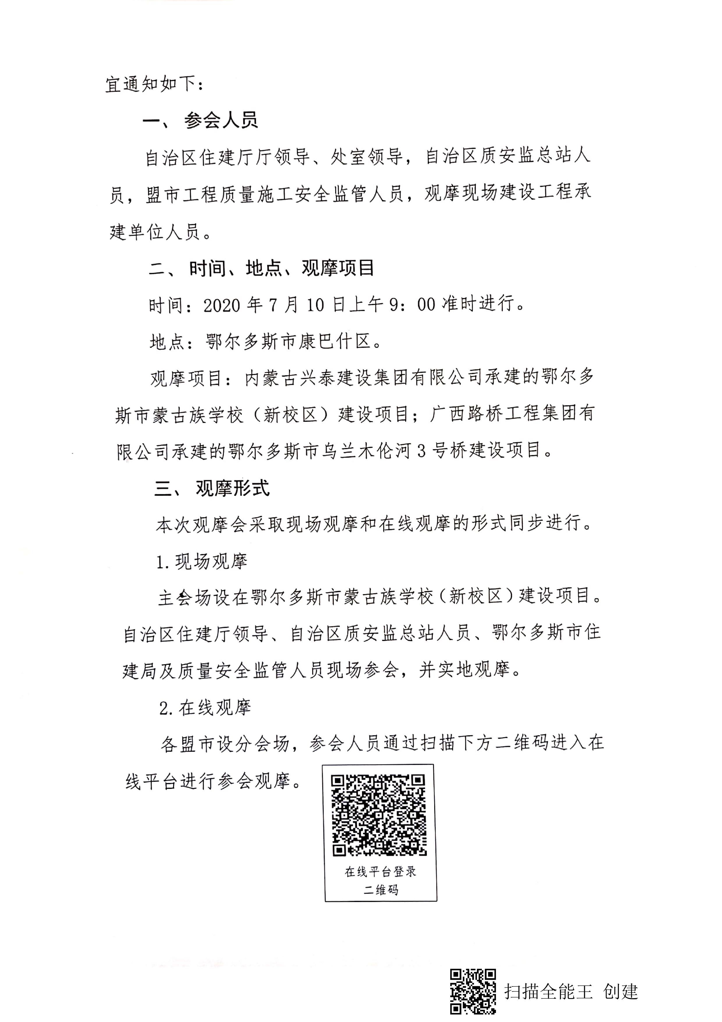 關于召開2020年全區(qū)建設工程質量施工安全標準化在線觀摩會的通知