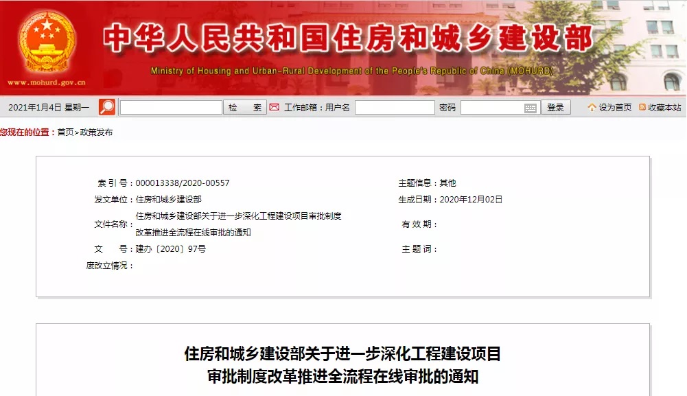 近日,住房和城鄉(xiāng)建設(shè)部印發(fā)通知,要求深化工程建設(shè)項(xiàng)目審批制度改革,加快推進(jìn)工程建設(shè)項(xiàng)目全流程在線審批,不斷提升工程建設(shè)項(xiàng)目審批效能,優(yōu)化營(yíng)商環(huán)境。