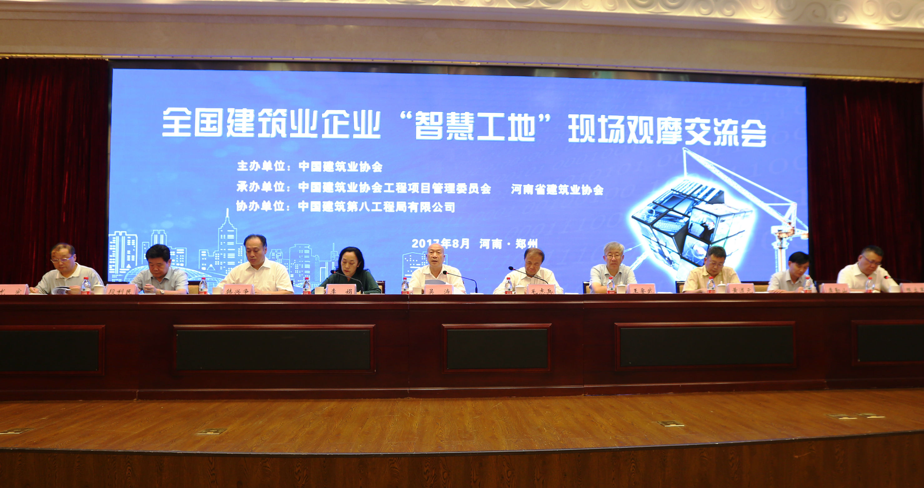 全國建筑業(yè)企業(yè)“智慧工地”現(xiàn)場觀摩交流會于8月9日至10日在鄭州市舉辦。中國建筑業(yè)協(xié)會副會長兼秘書長吳濤出席會議并講話,河南省建筑業(yè)協(xié)會副會長兼秘書長李娟、中國建筑股份有限公司總工程師毛志兵分別致辭,中建協(xié)管理現(xiàn)代化委員會會長、哈爾濱工業(yè)大學(xué)土木學(xué)院教授王要武,中國建筑第八工程局有限公司副總經(jīng)理韓興爭、河南省建筑業(yè)協(xié)會副會長黃道元等有關(guān)協(xié)會、企業(yè)負(fù)責(zé)人出席會議。開幕式由中建協(xié)工程項(xiàng)目管理委員會副會長陳立軍主持。來自建筑施工企業(yè)300余名代表參加了會議。